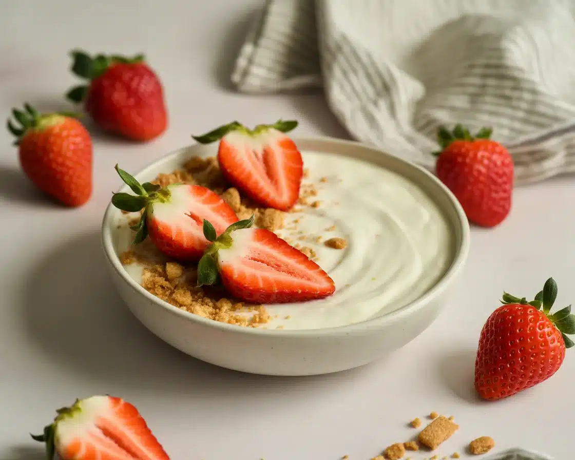 A quick and creamy high-protein dessert that tastes like cheesecake mousse, perfect for satisfying sweet cravings in just five minutes.